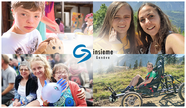 Depuis plus de 60 ans, l'association insieme-Genève est active en faveur des personnes avec une déficience intellectuelle et leurs familles. Elle offre à ses membres écoute, soutien et conseil, accompagnement et information, défense des intérêts, loisirs pour les personnes concernées et temps de répit pour les familles 16 séjours de vacances et 10 courts séjours sont proposés chaque année à plus de 200 enfants, adolescents et adultes en situation de handicap. "S'engager en faveur des personnes avec une déficience intellectuelle. Œuvrer pour que leur droit à vivre comme membres à part entière de la société soit respecté."